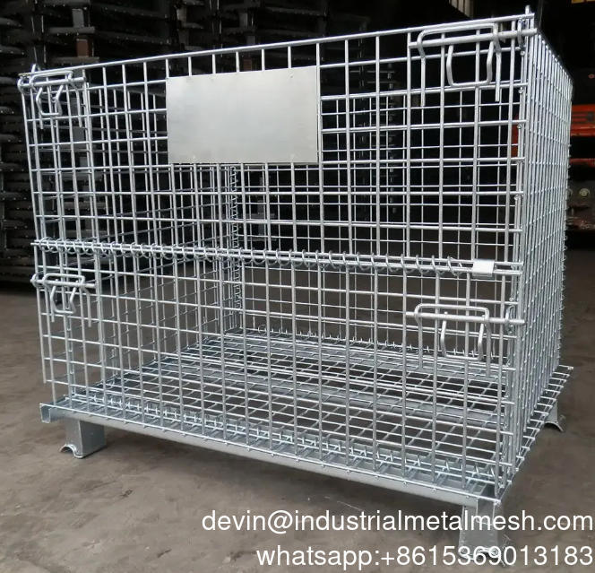 La cage de stockage est soudée avec du fil d'acier résistant, et le fond est soudé en forme de U pour rendre la structure plus robuste. Installez des matériaux de protection en carton à l'intérieur de la cage de stockage pour ranger les matériaux susceptibles de rayer la surface. Avec l'aide d'équipements de manutention, elle peut être utilisée dans les processus logistiques tels que le transport, le chargement et le déchargement, et le stockage.